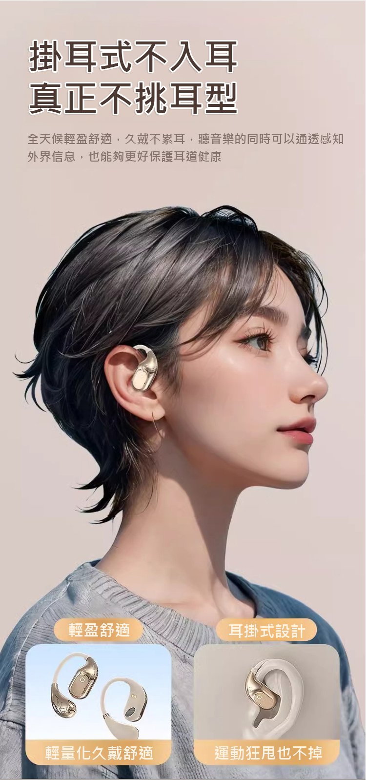 開放式設計,舒適佩戴一整天,聆聽自由不壓耳!