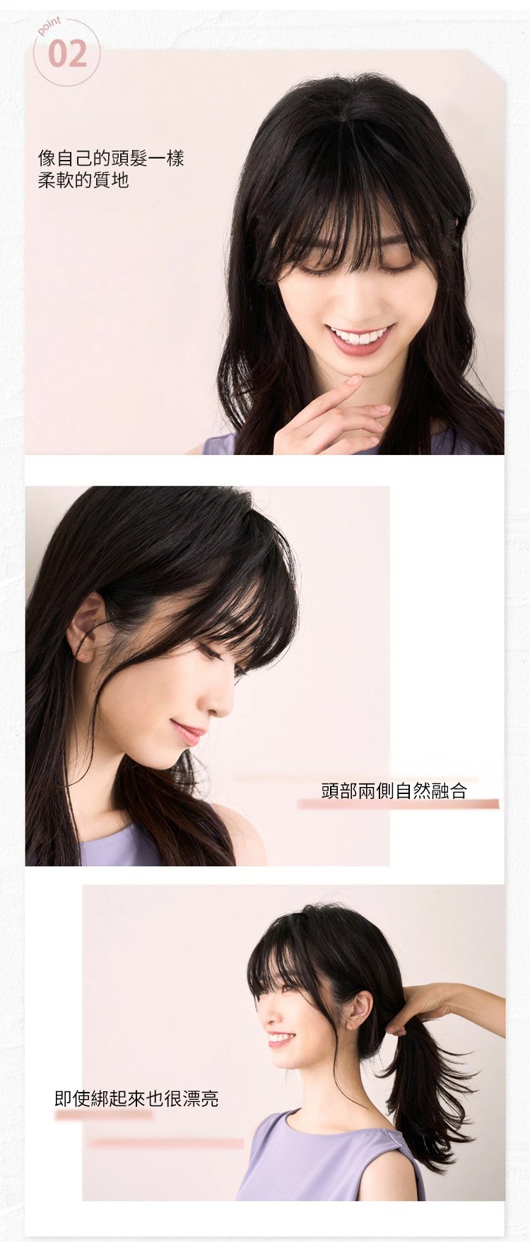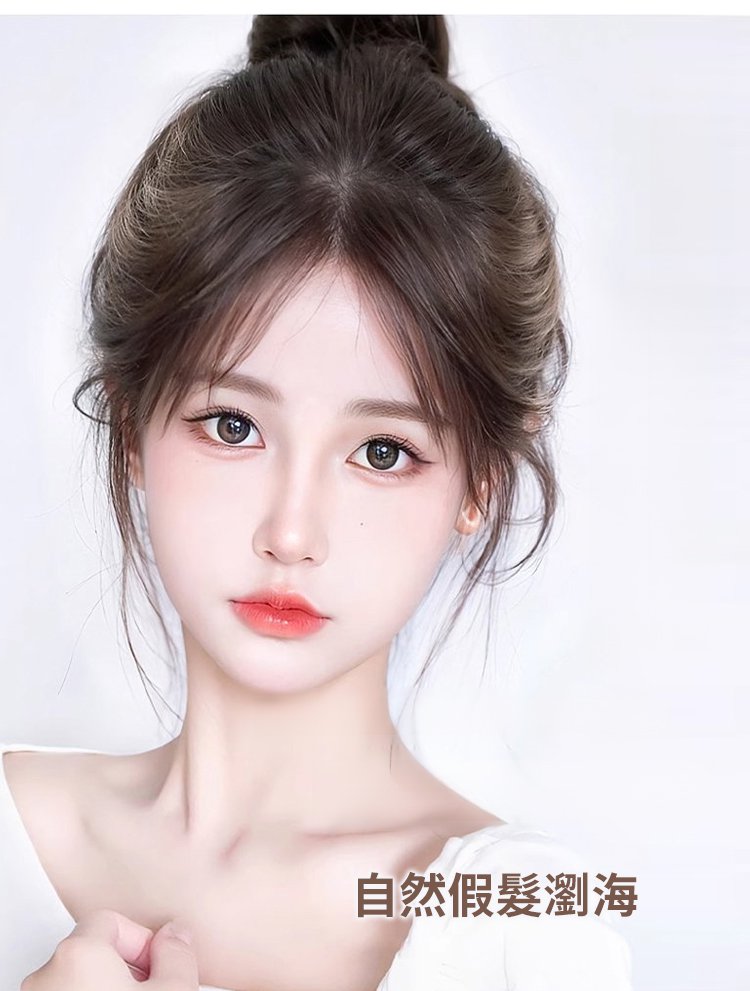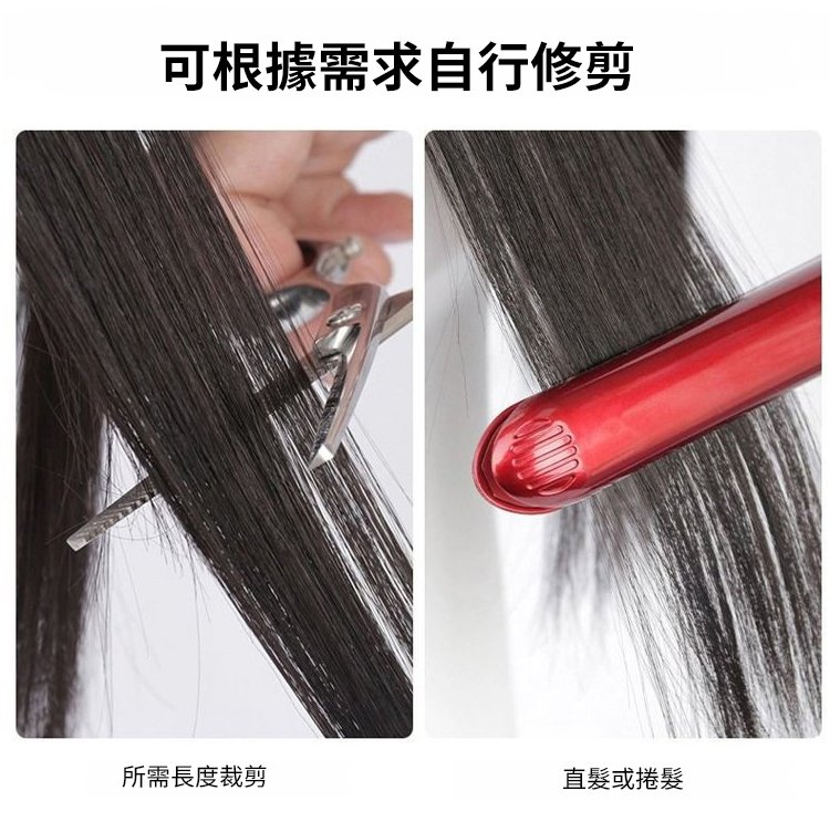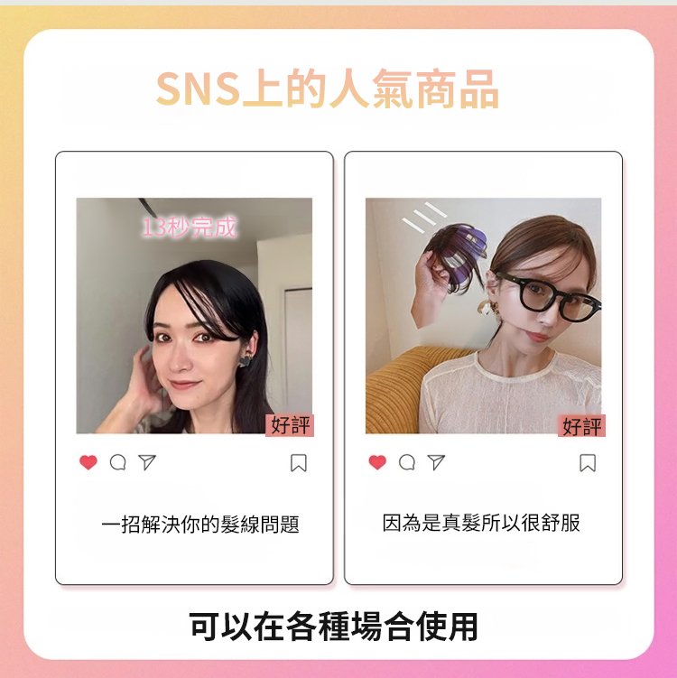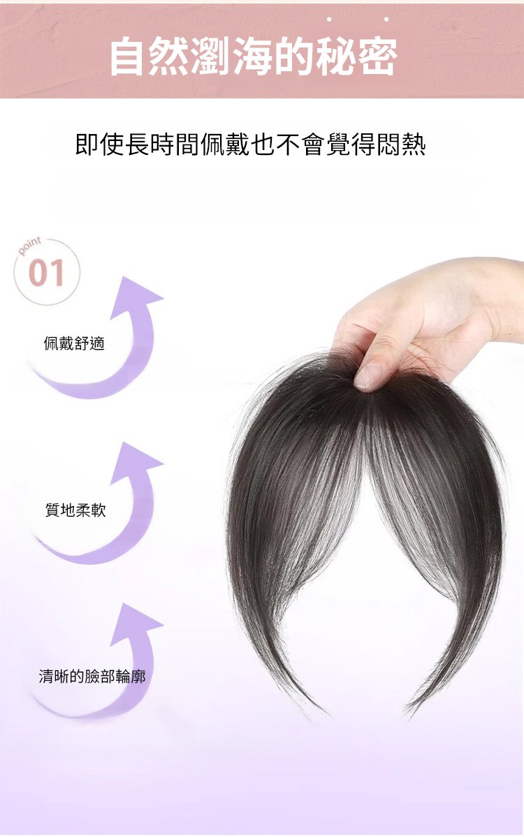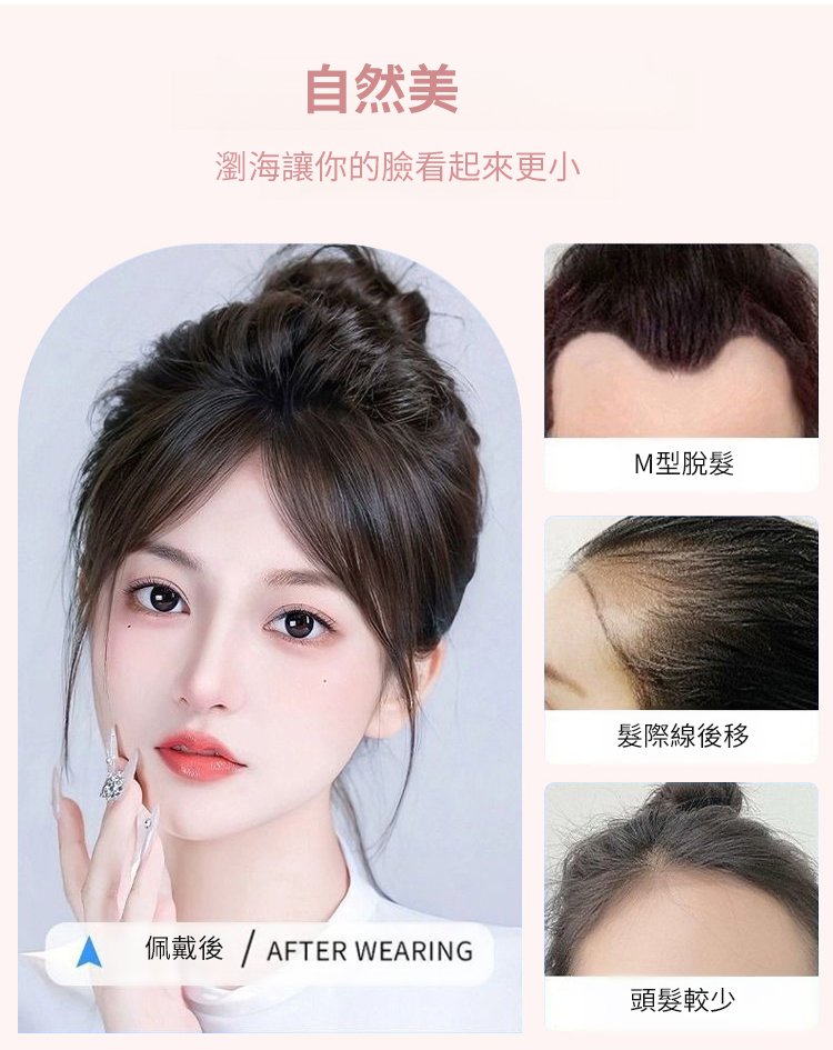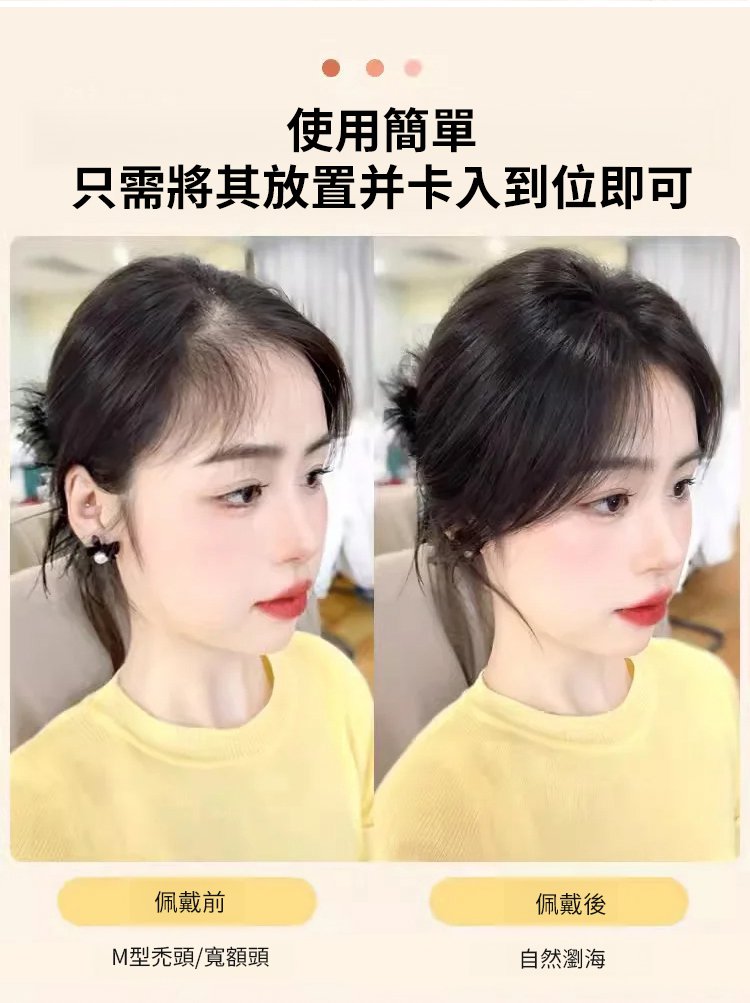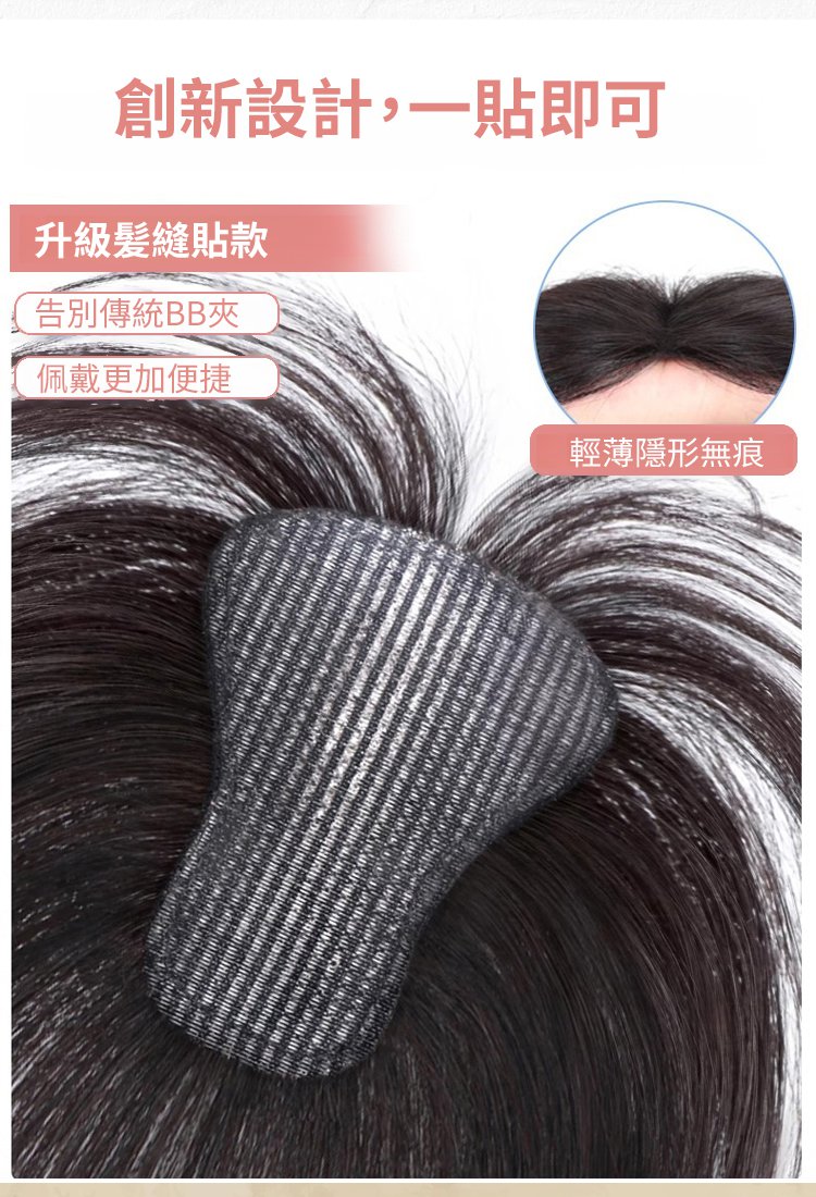 【無需發卡】自然魔鬼氈假髮片女