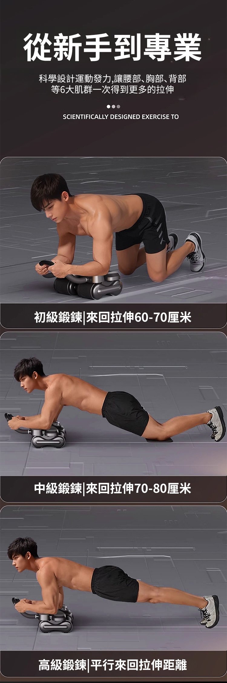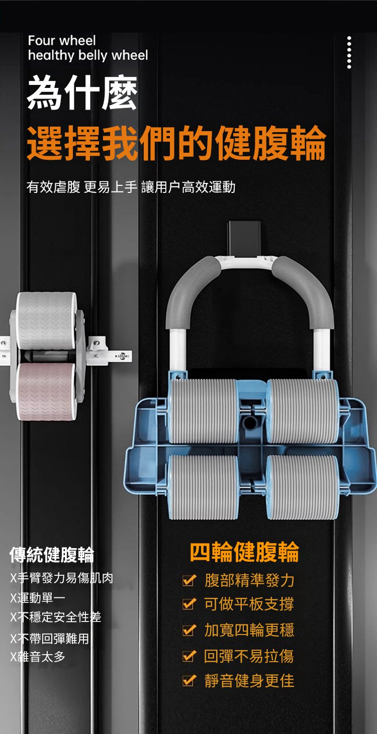 四輪自動回彈收腹卷腹健腹輪