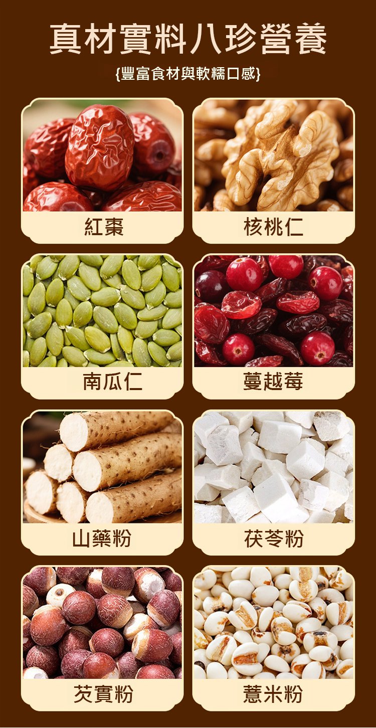 八種珍貴食材融合,滿足味蕾同時守護健康!料多實在,口感升級,享受健康美味每一口!